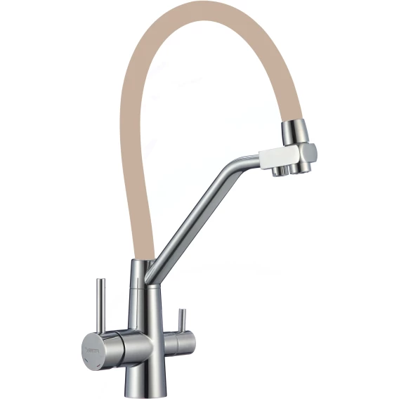 Смеситель для кухни Fmark FS0662-A12 с подключением к фильтру, гибким изливом, хром/бежевый