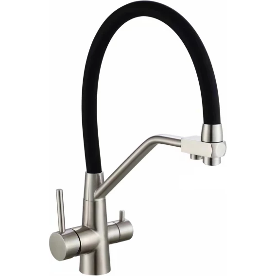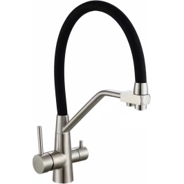 Смеситель для кухни Fmark FS0662-L01-V2 с подключением к фильтру, гибким изливом, сатин/черный