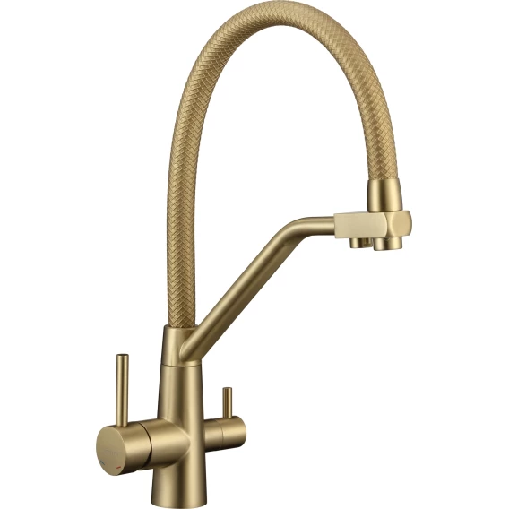 Смеситель для кухни Fmark FS0662-XC07 с подключением к фильтру, гибким изливом, золотой матовый
