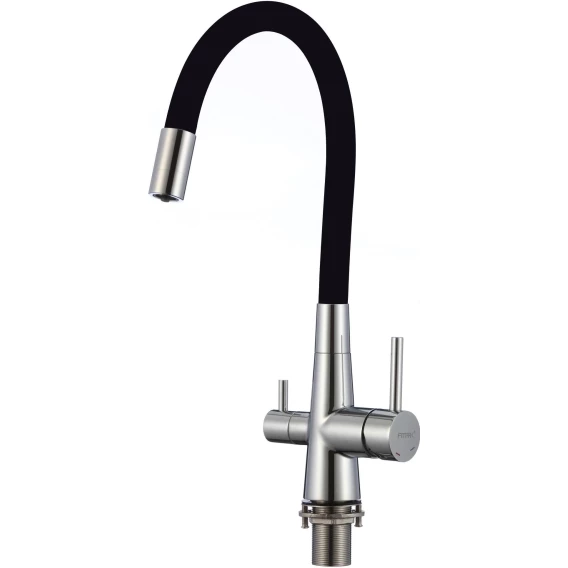 Смеситель для кухни Fmark FS1062-A01 с подключением к фильтру, гибким изливом, хром/черный