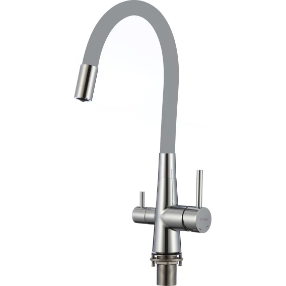Смеситель для кухни Fmark FS1062-A04 с подключением к фильтру, гибким изливом, хром/серый