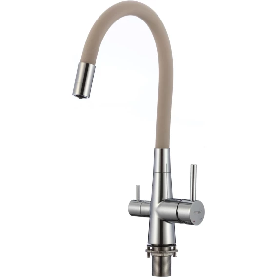 Смеситель для кухни Fmark FS1062-A12 с подключением к фильтру, гибким изливом, хром/бежевый