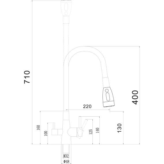 Высота излива 13 см