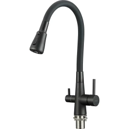 Смеситель для кухни Fmark FS1062-H01-2 с подключением к фильтру, гибким изливом, черный матовый