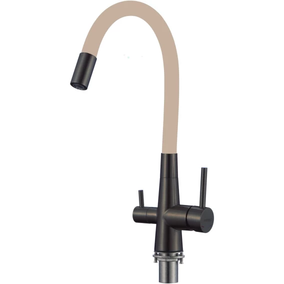 Смеситель для кухни Fmark FS1062-H12 с подключением к фильтру, гибким изливом, черный матовый/бежевый