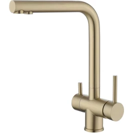 Fmark FS1362C — это стильный и технологичный кухонный смеситель с раздельной подачей водопроводной и фильтрованной воды. Модель выполнена в выразительном цвете матовое золото, который придаёт кухне утончённый и благородный акцент. С помощью одного смесителя можно комфортно пользоваться как обычной водопроводной, так и очищенной питьевой водой.