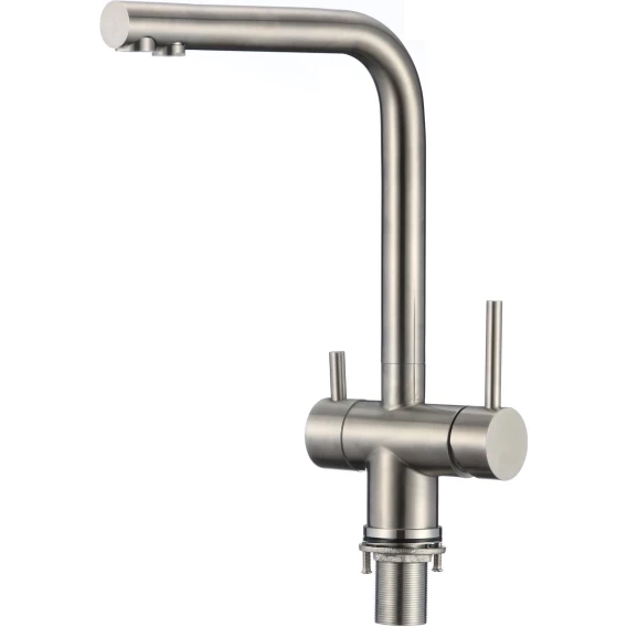 Надёжность стали, раздельная подача воды и удобный монтаж делают его достойным выбором для современных кухонь.
