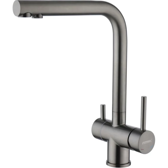Fmark FS1362Q — это современный кухонный смеситель с раздельной подачей водопроводной и фильтрованной воды. Выполненный в эффектном цвете графит , он отличается лаконичным дизайном, прочной конструкцией из нержавеющей стали и продуманной эргономикой. Эта модель заменяет сразу два устройства — стандартный смеситель и отдельный кран для фильтра, экономя место и сохраняя стиль интерьера.