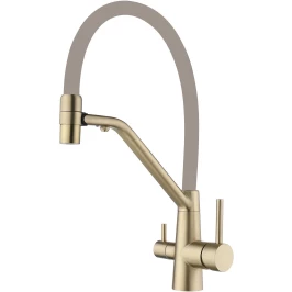 Смеситель для кухни Fmark FS1462-C12 с подключением к фильтру, гибким изливом, золотой матовый/бежевый