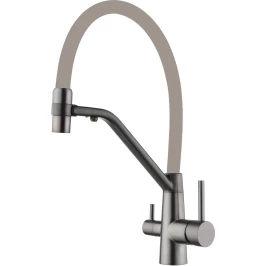 Смеситель Fmark FS1462-Q12 — это гармония высоких технологий, удобства и выразительного дизайна. Покрытие в цвете «графит (воронёная сталь)» и эластичный бежевый излив из мягкого силикона придают модели стильный, профессиональный вид, который будет уместен в интерьере любой современной кухни.