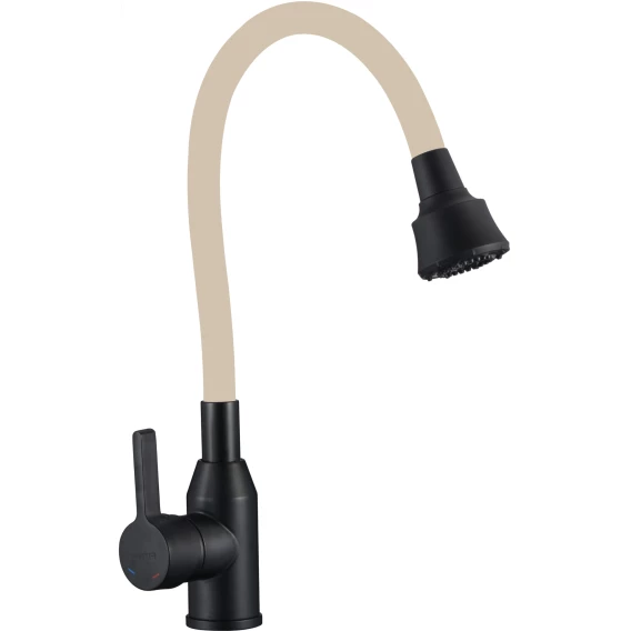 Смеситель для кухни Fmark FS8266H-12 с гибким изливом, черный матовый/бежевый
