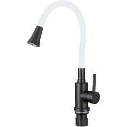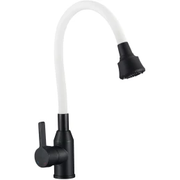 Смеситель для кухни Fmark FS8277H-02 с гибким изливом, черный матовый/белый