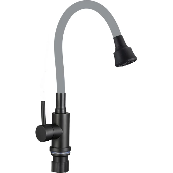 Смеситель для кухни Fmark FS8288H-04 с гибким изливом, черный матовый/серый
