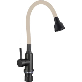 Смеситель для кухни Fmark FS8288H-12 с гибким изливом, черный матовый/бежевый
