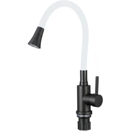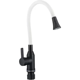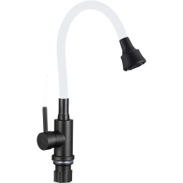Смеситель для кухни Fmark FS8299H-02 с гибким изливом, черный матовый/белый