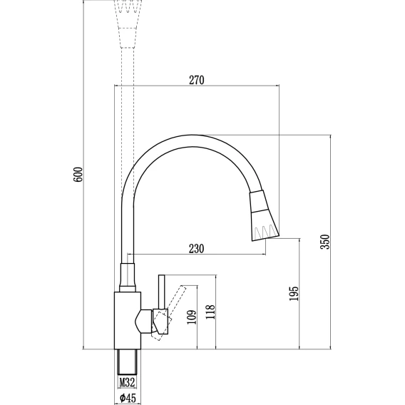 Длина излива 23 см