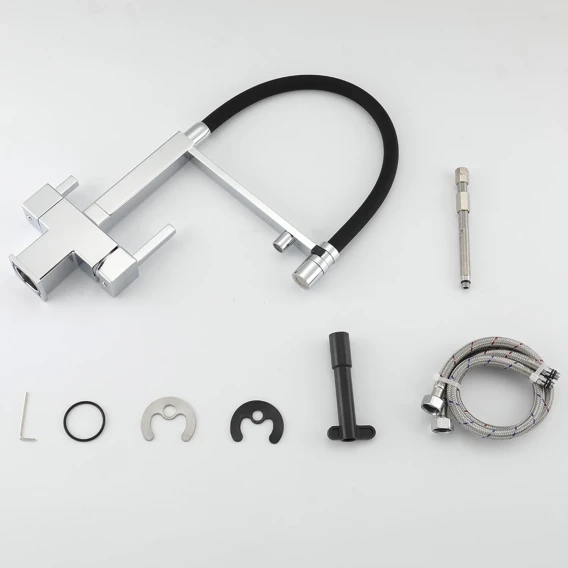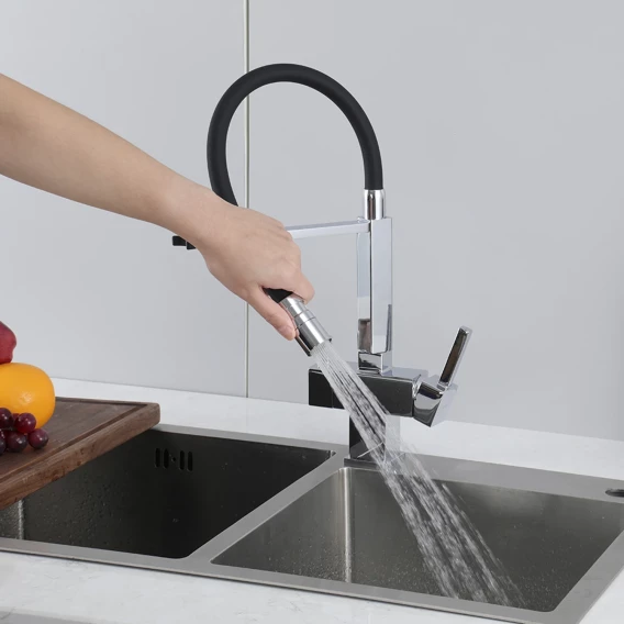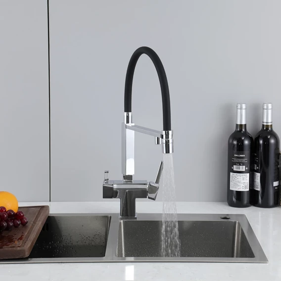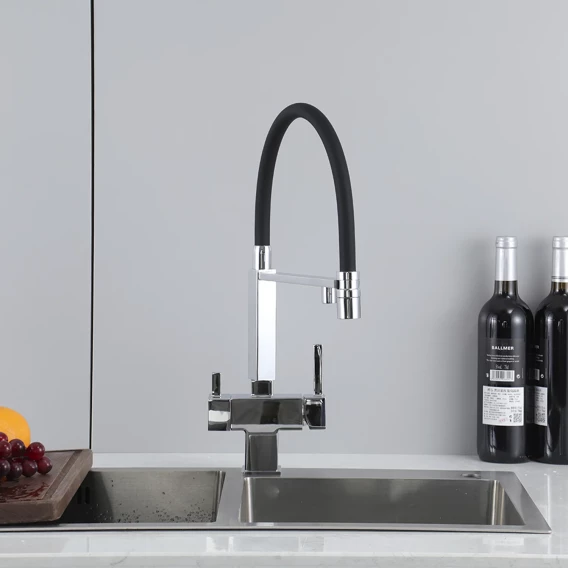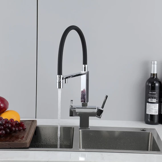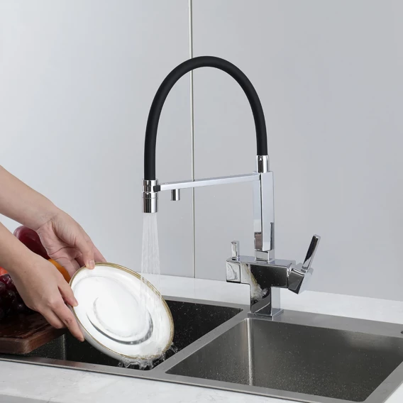 Смеситель для кухни Gappo G4395-50 с подключением к фильтру, гибким изливом, хром