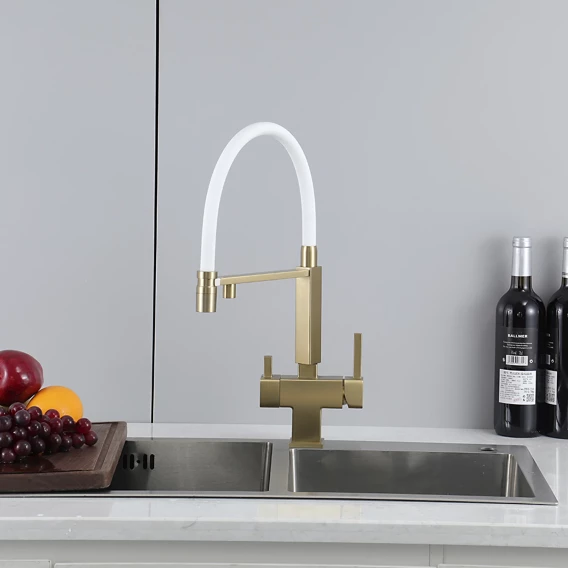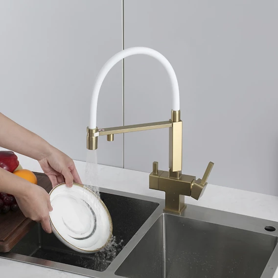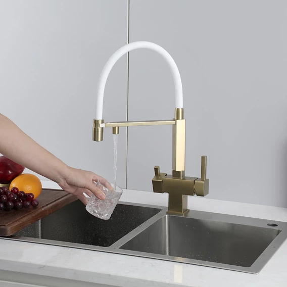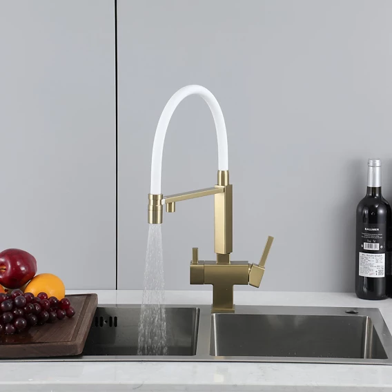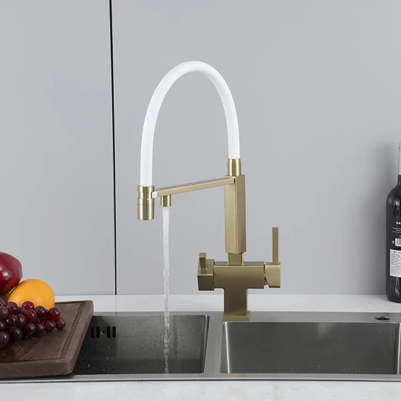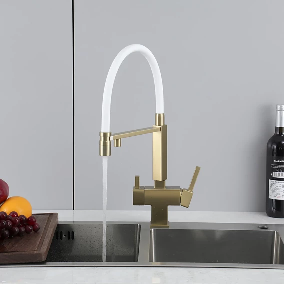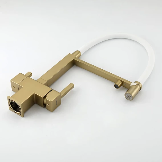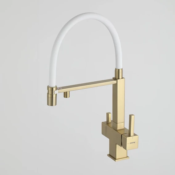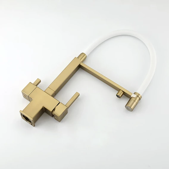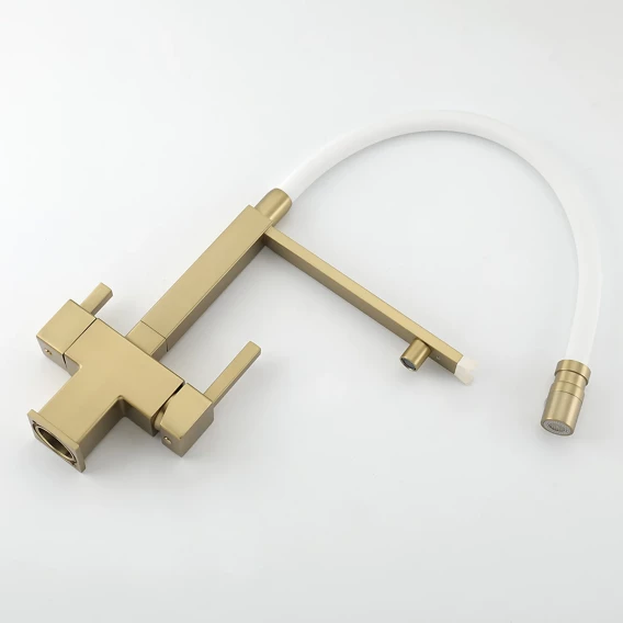 Смеситель для кухни Gappo G4395-53 с подключением к фильтру, гибким изливом, золотой матовый