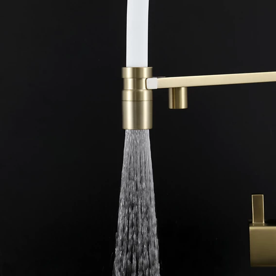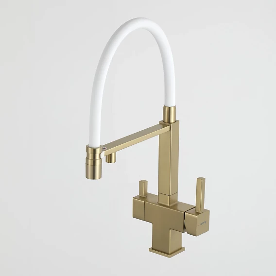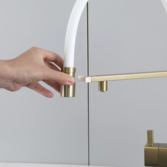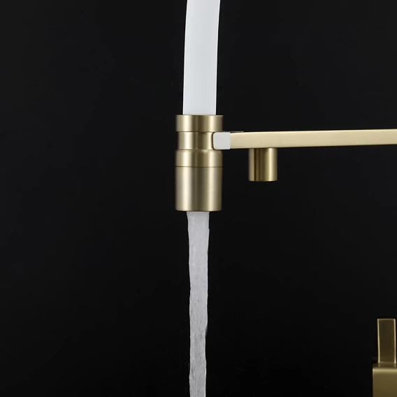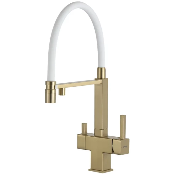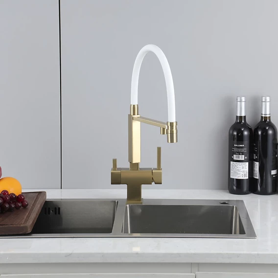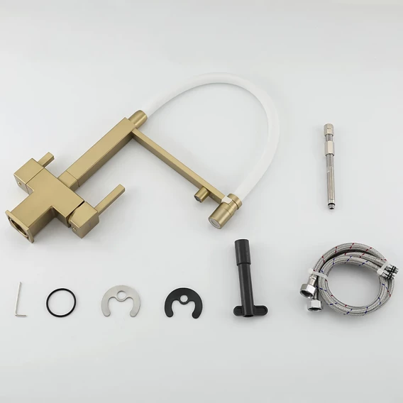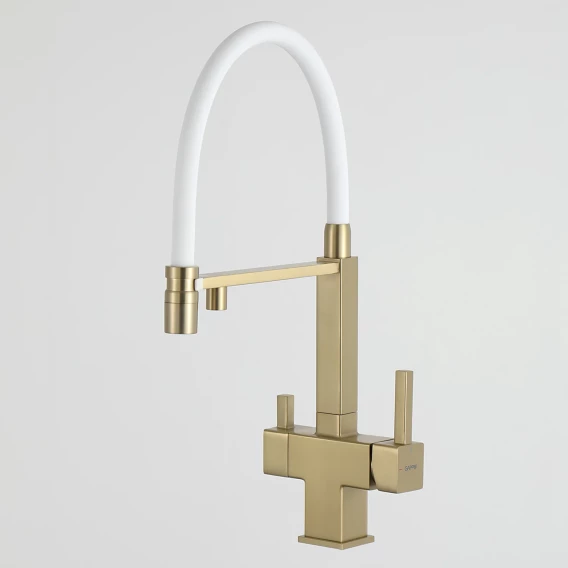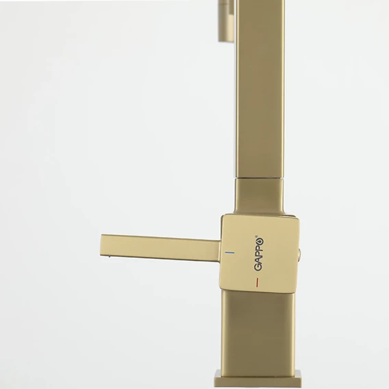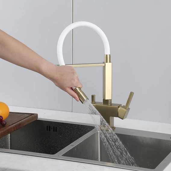 Смеситель для кухни Gappo G4395-53 с подключением к фильтру, гибким изливом, золотой матовый