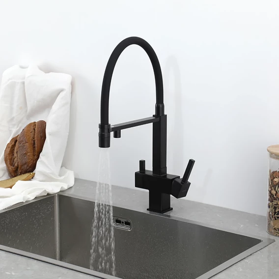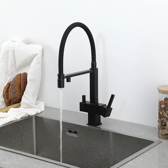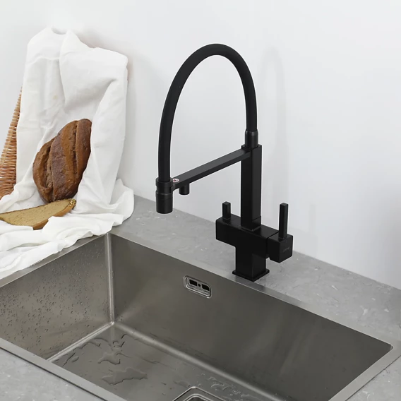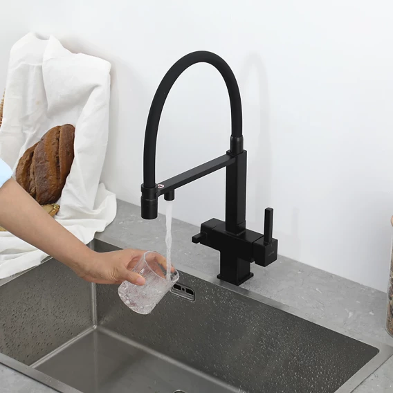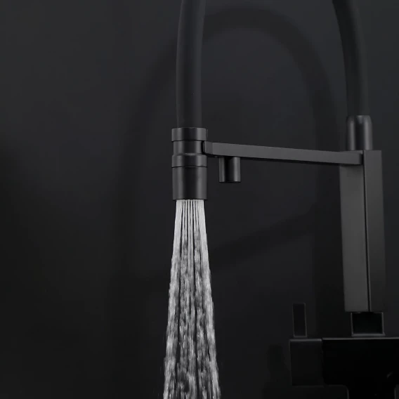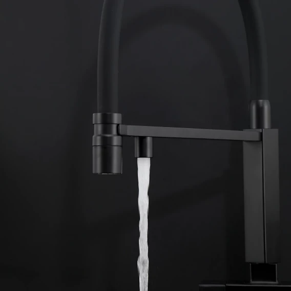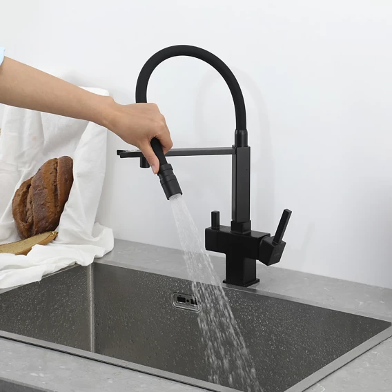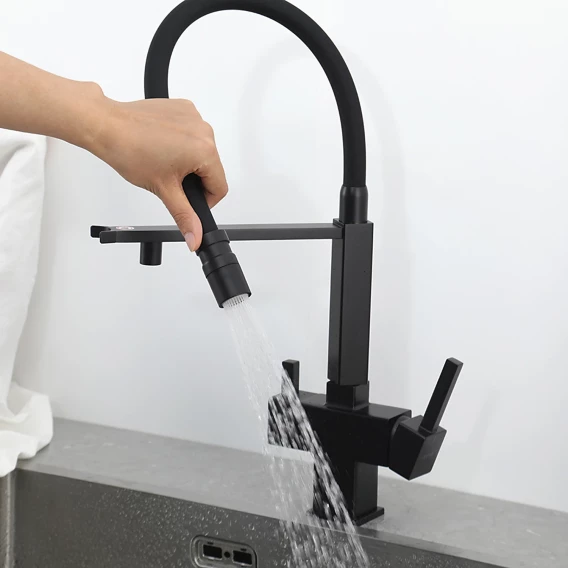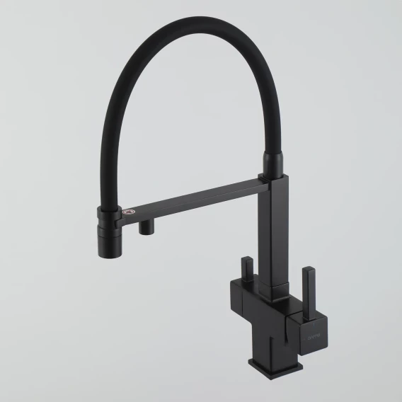 Смеситель для кухни Gappo G4395-56 с подключением к фильтру, гибким изливом, черный матовый