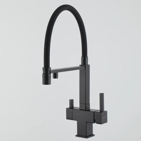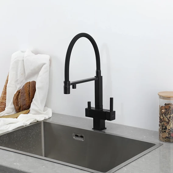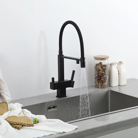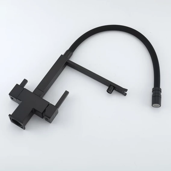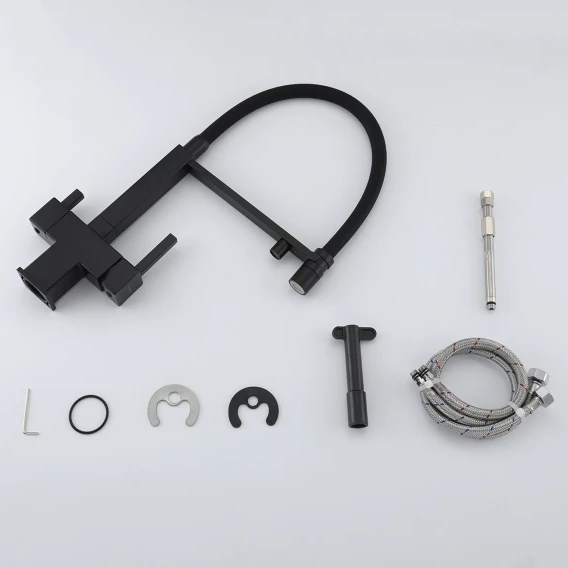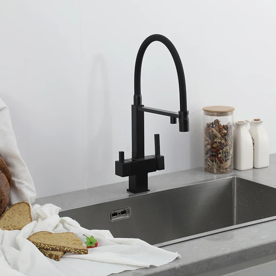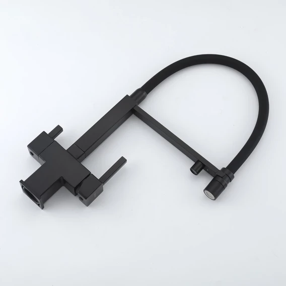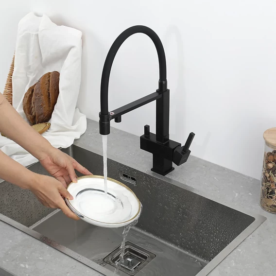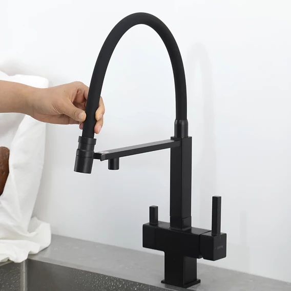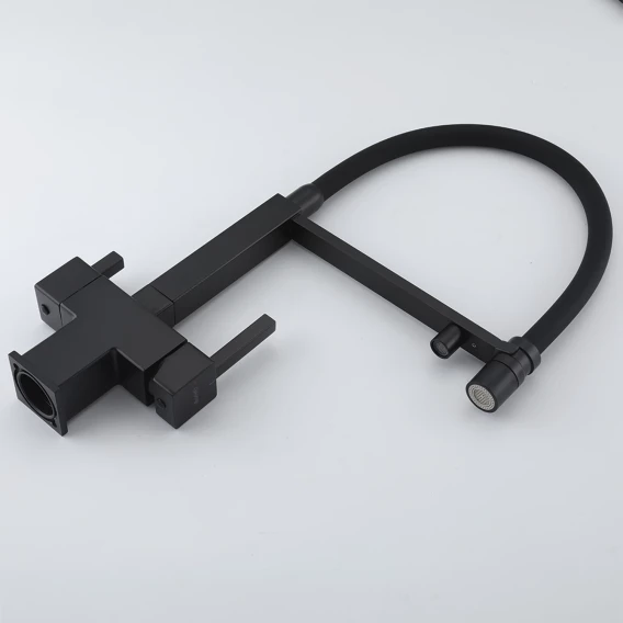 Смеситель для кухни Gappo G4395-56 с подключением к фильтру, гибким изливом, черный матовый