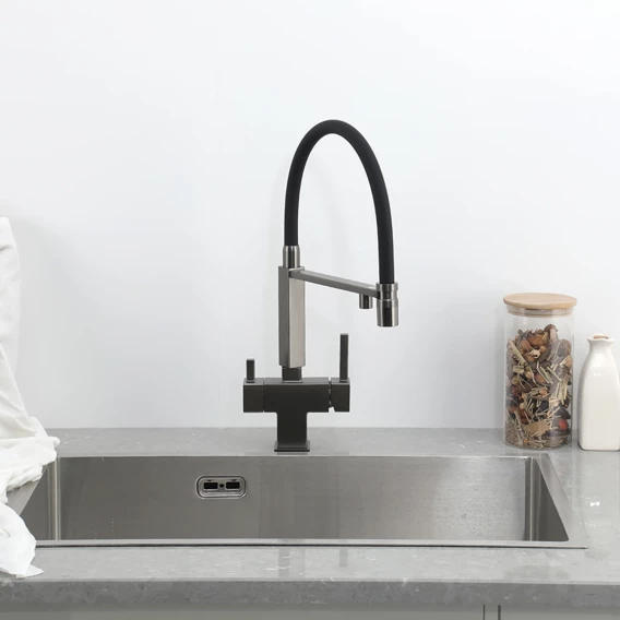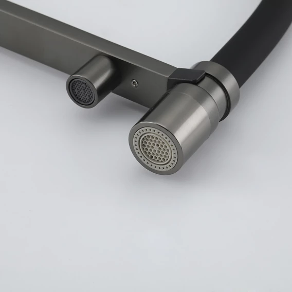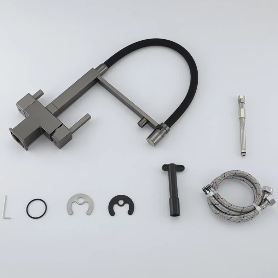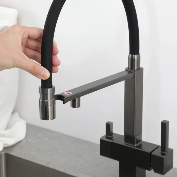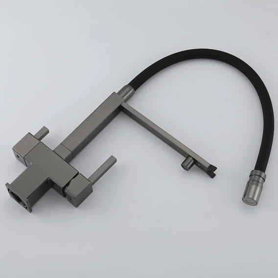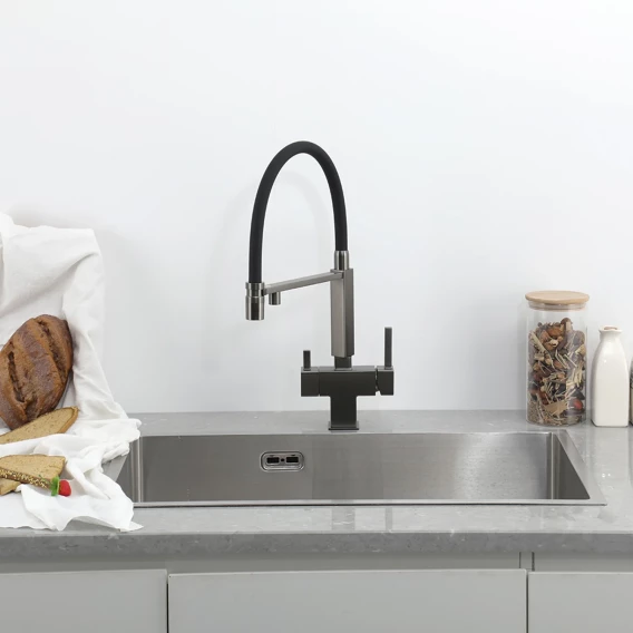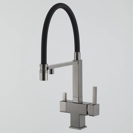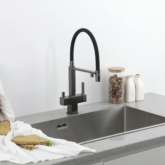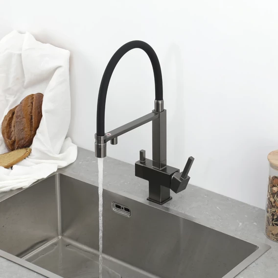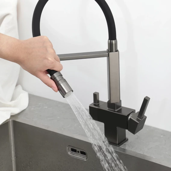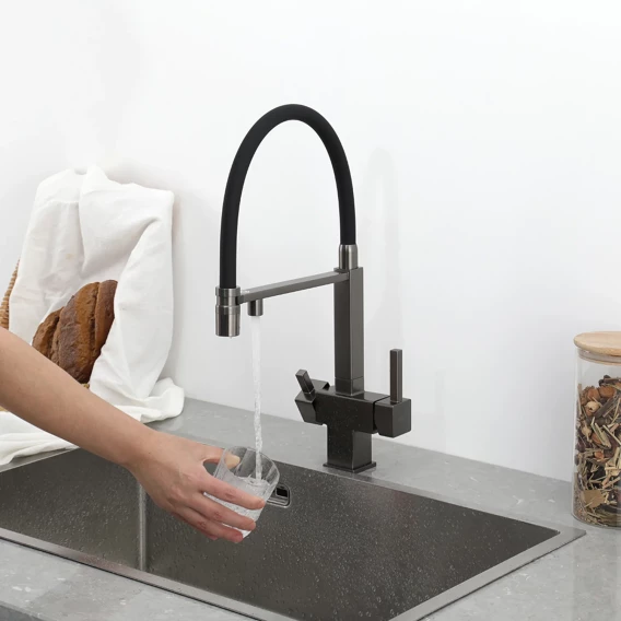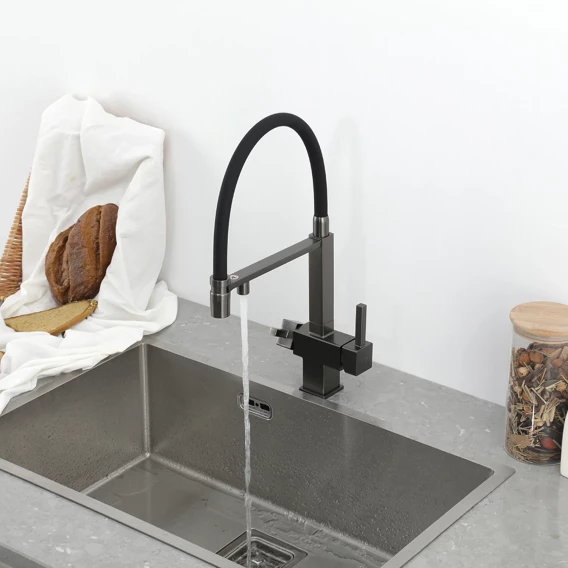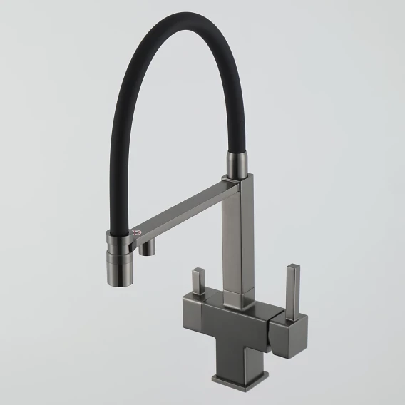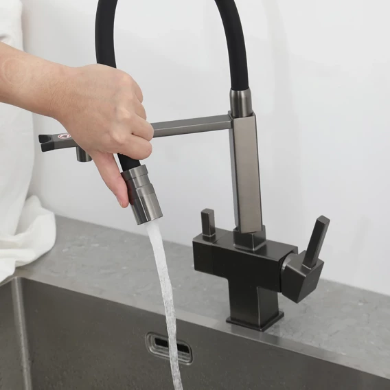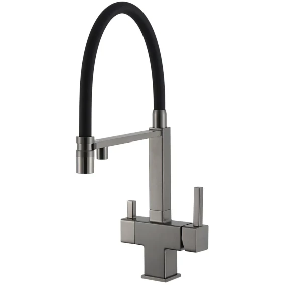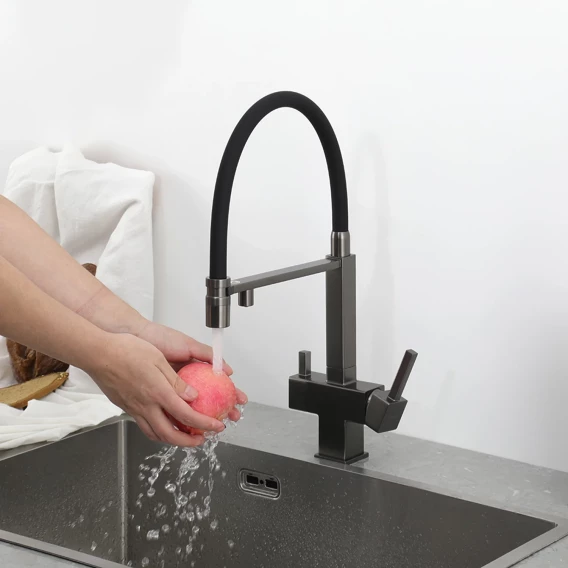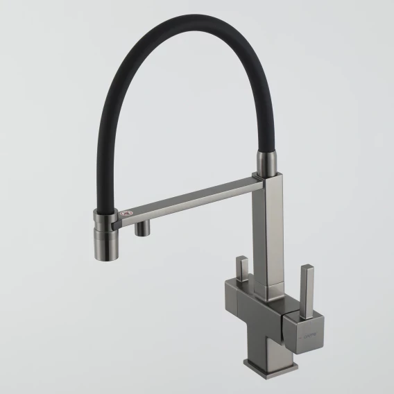 Смеситель для кухни Gappo G4395-59 с подключением к фильтру, гибким изливом, оружейная сталь