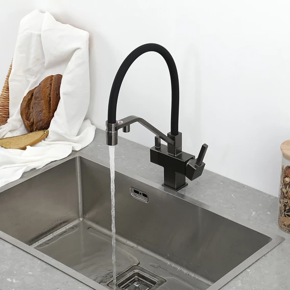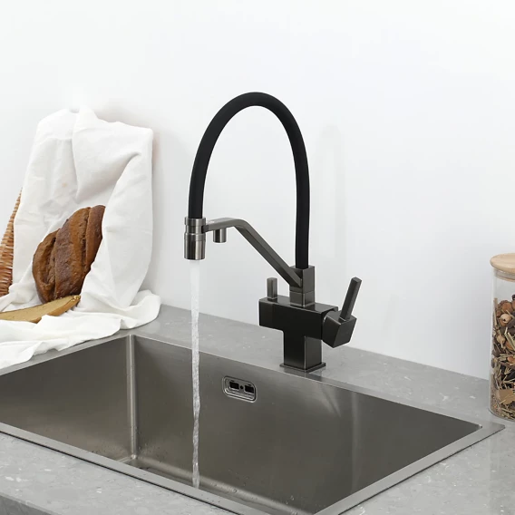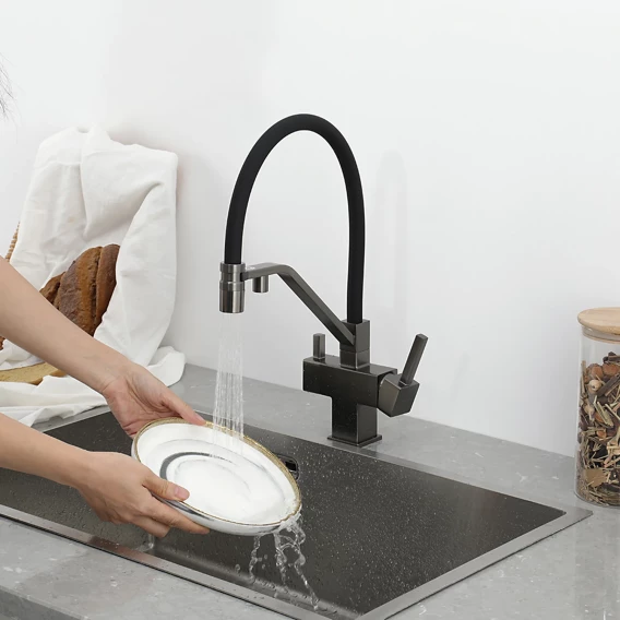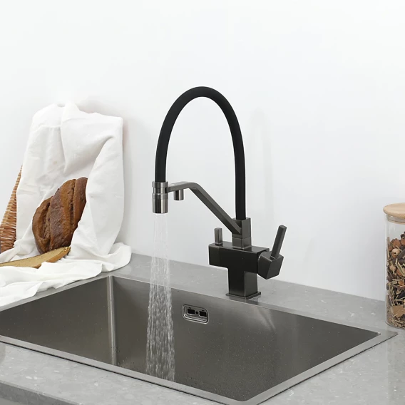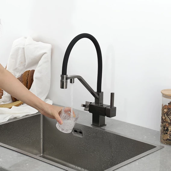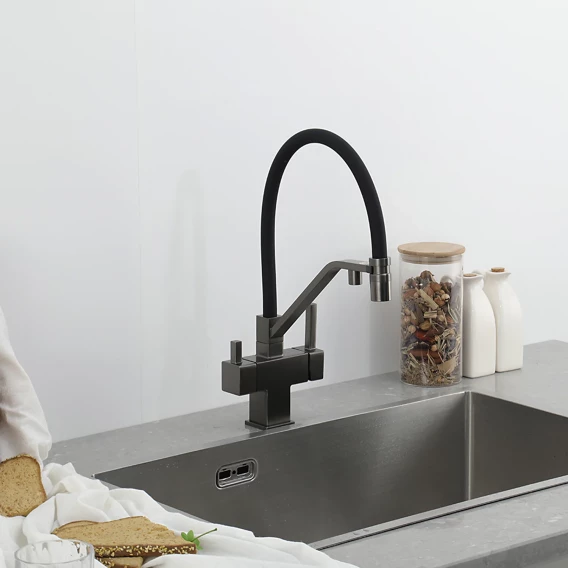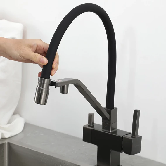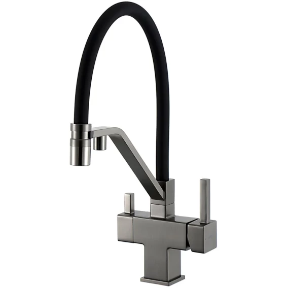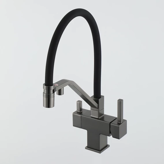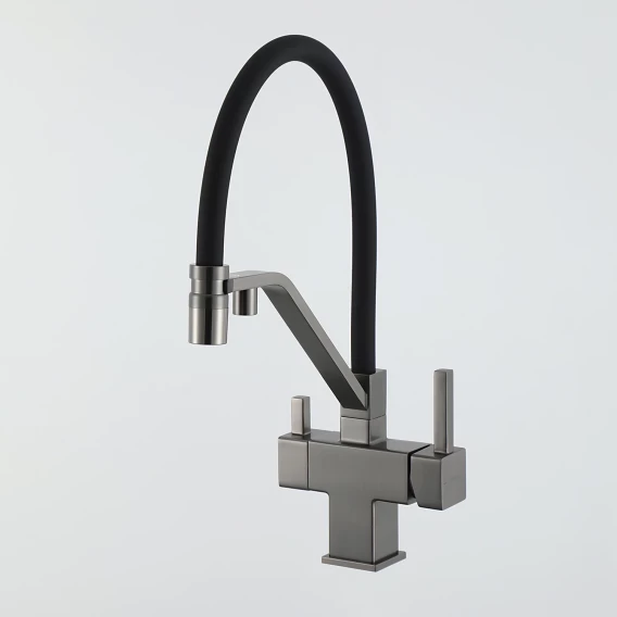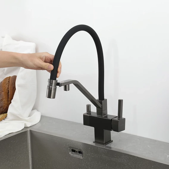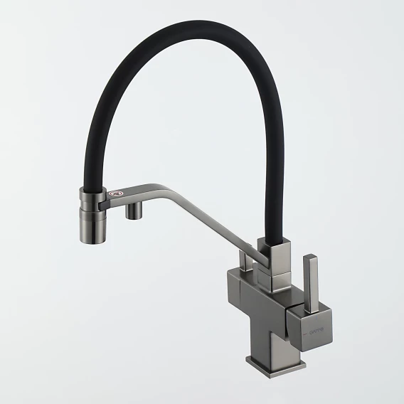 Смеситель для кухни Gappo G4395-69 с подключением к фильтру, гибким изливом,  оружейная сталь