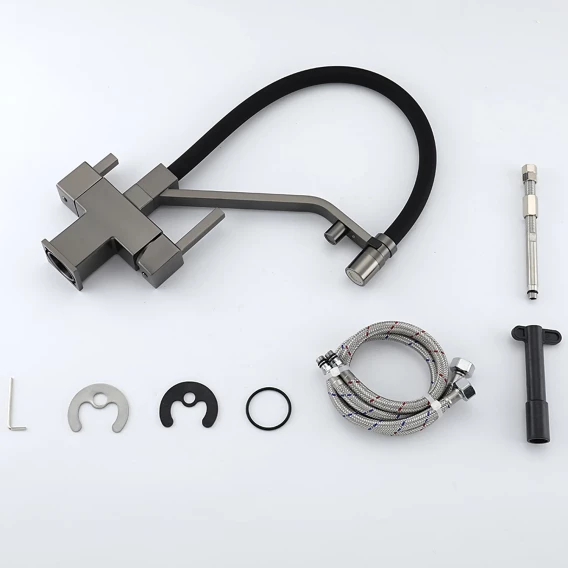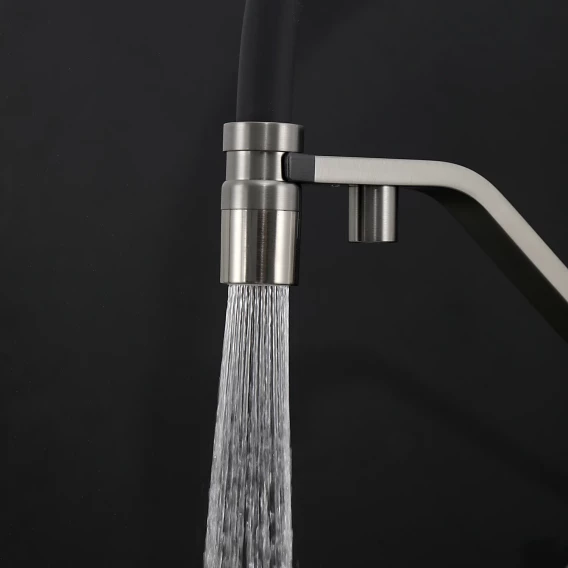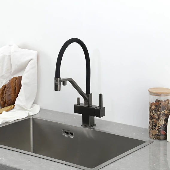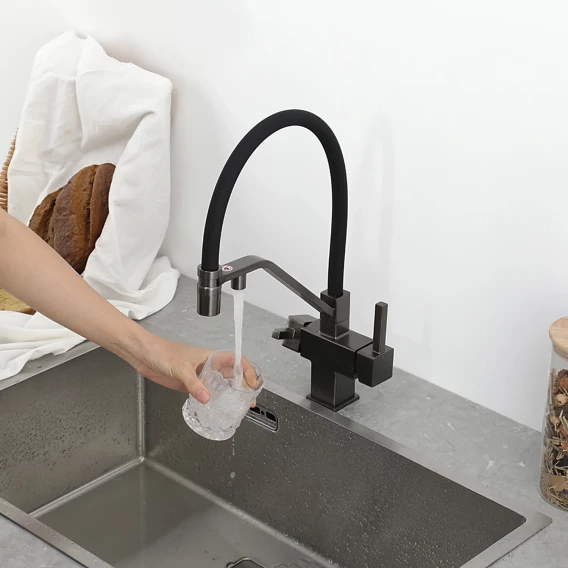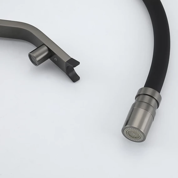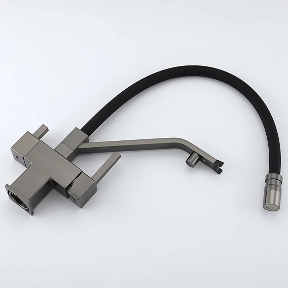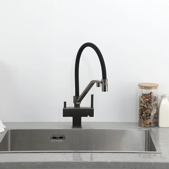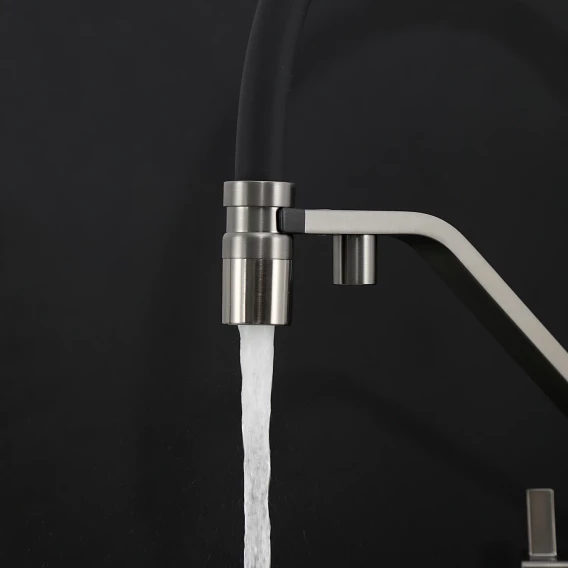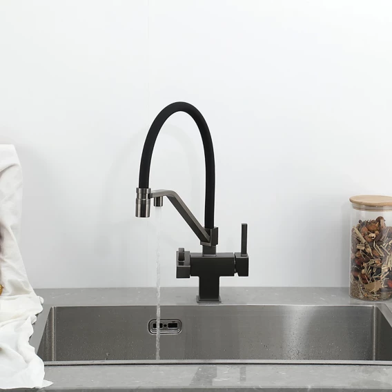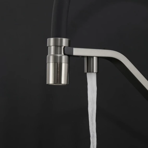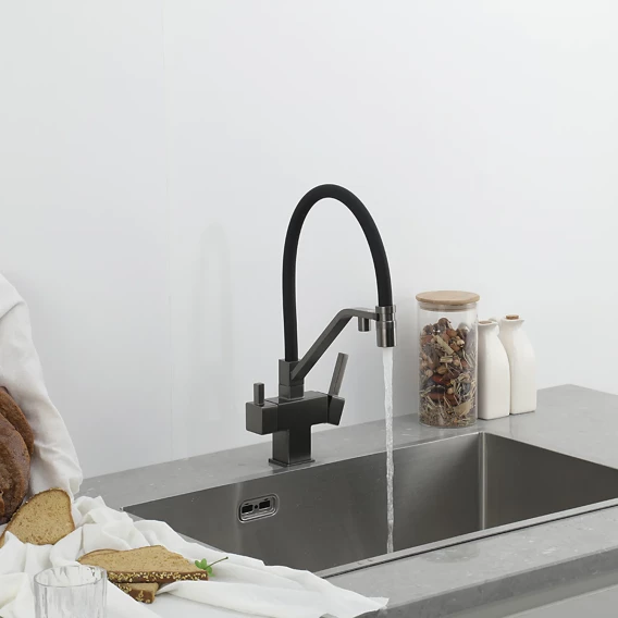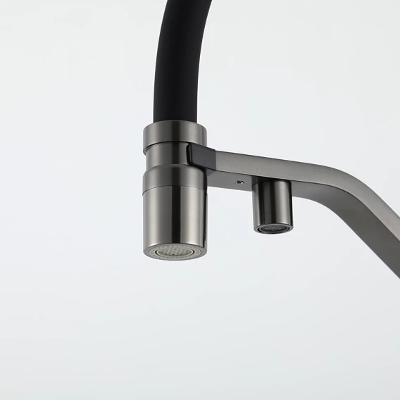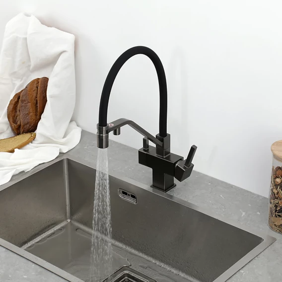 Смеситель для кухни Gappo G4395-69 с подключением к фильтру, гибким изливом,  оружейная сталь