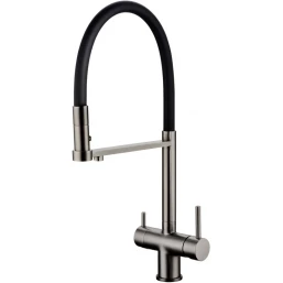 Смеситель для кухни Grocenberg GB4095BG с подключением к фильтру, гибким изливом, графит