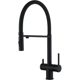 Смеситель для кухни Grocenberg GB4096BL с подключением к фильтру, гибким изливом, черный матовый