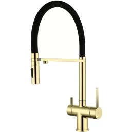 Смеситель для кухни Grocenberg GB4096GO с подключением к фильтру, гибким изливом, золотой