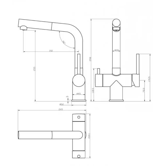 Крепление, Аэратор, Гибкая подводка, Душевой шланг, Душевая лейка