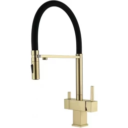 Смеситель для кухни Grocenberg GB4098MG с подключением к фильтру, гибким изливом, золотой матовый