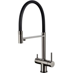 Смеситель для кухни Grocenberg GB4099BG с подключением к фильтру, гибким изливом, графит