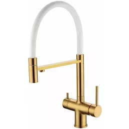 Смеситель для кухни Grocenberg GB4099GL с подключением к фильтру, гибким изливом, золотой брашированный