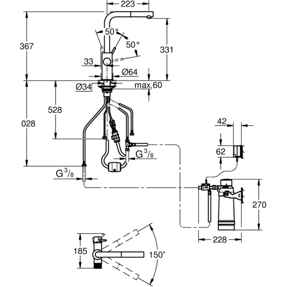 • 28 мм керамический дисковый картридж с технологией GROHE SilkMove