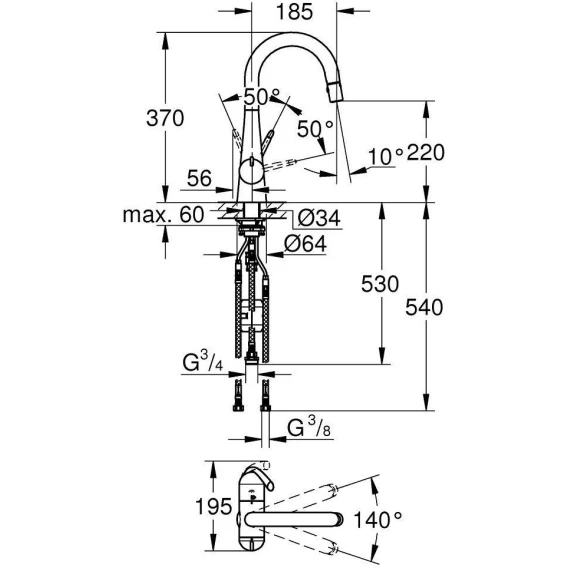 • переключатель: ламинарная струя / струя душа SpeedClean