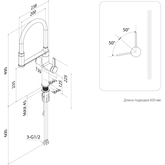 Высота излива 23.5 см