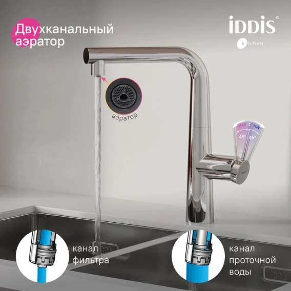Смеситель для кухни IDDIS Pure PURSBPFi05N с подключением к фильтру, выдвижным изливом, хром