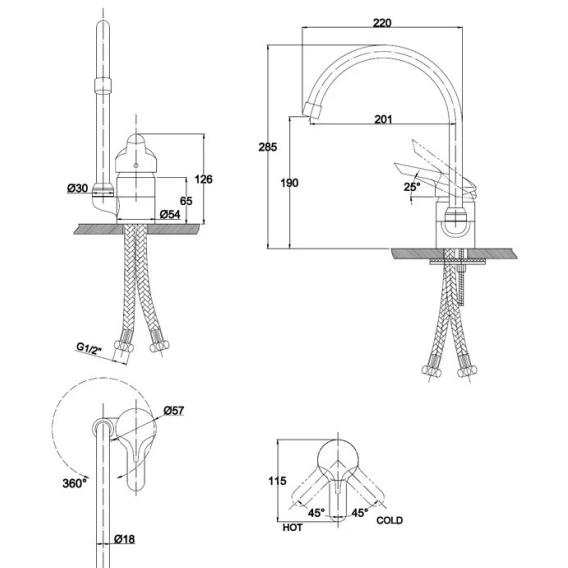 Смеситель для кухни Emmevi Deco Old 12645/CR хром