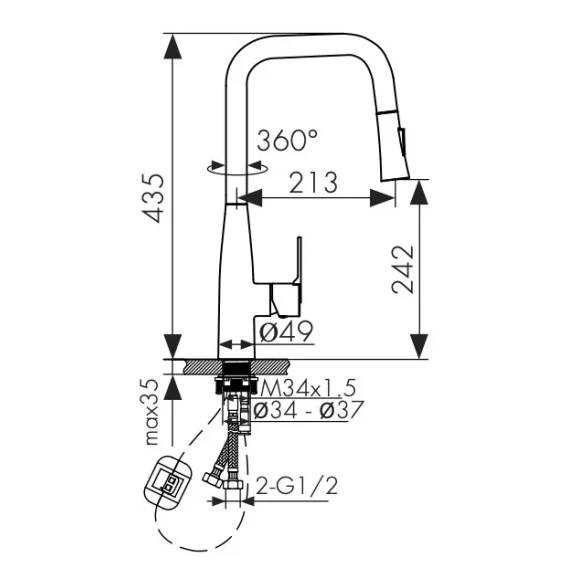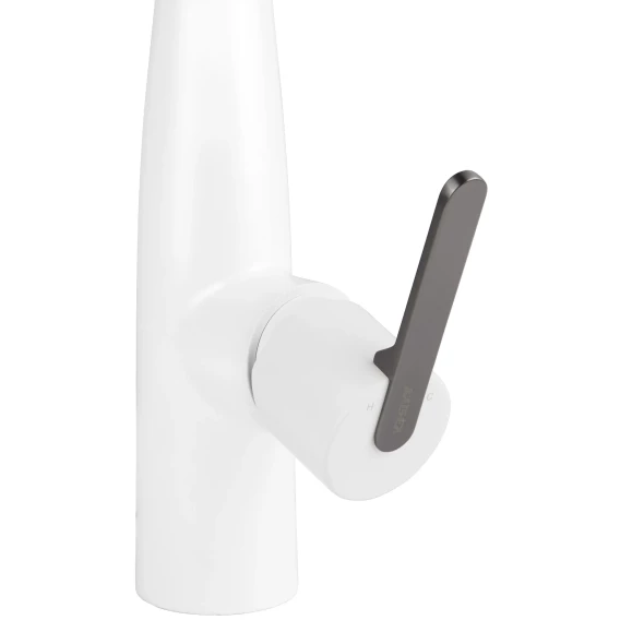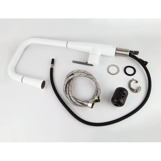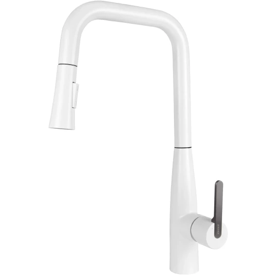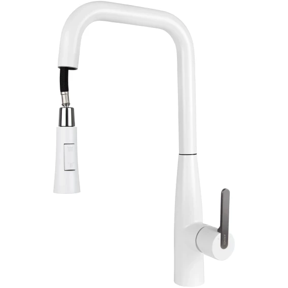 Смеситель для кухни Kaiser Claro 22144-24 с выдвижным изливом, белый матовый/вороненая сталь