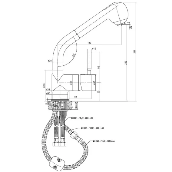 Крепление, Аэратор, Гибкая подводка, Душевой шланг, Душевая лейка