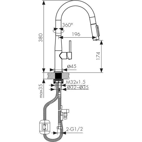 Высота излива 17.4 см