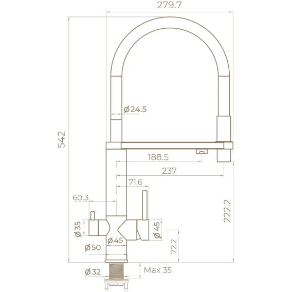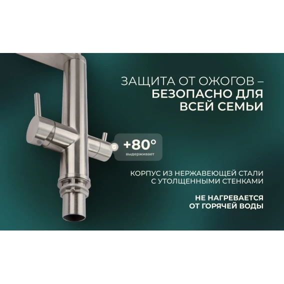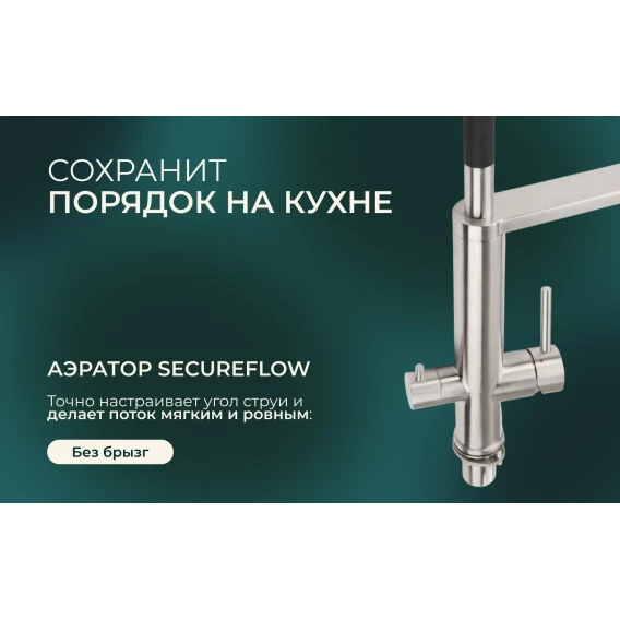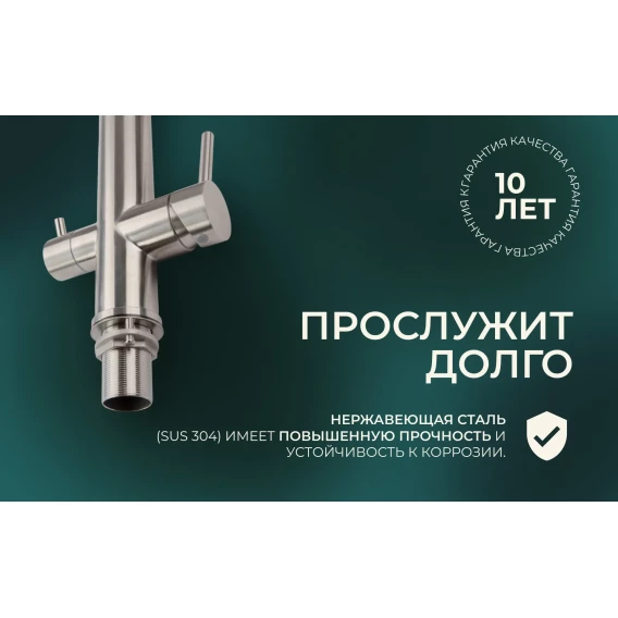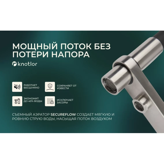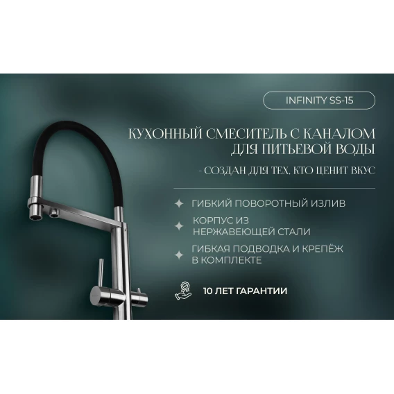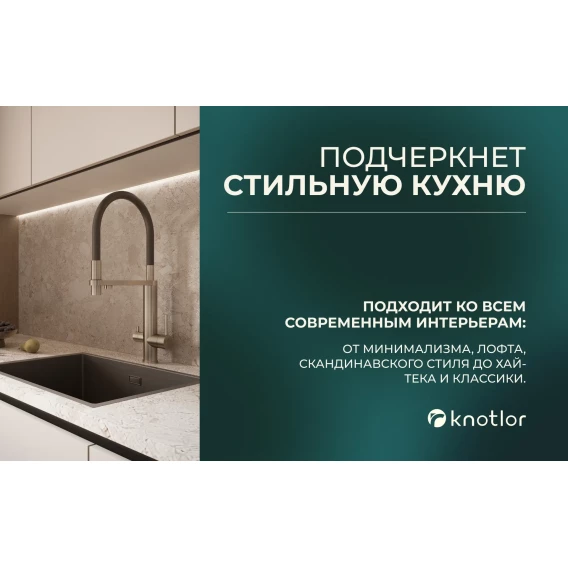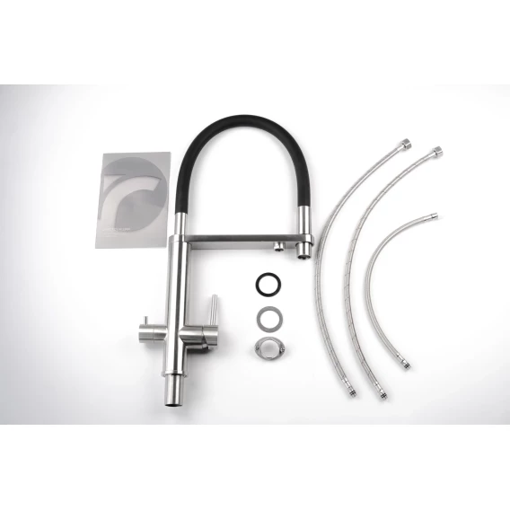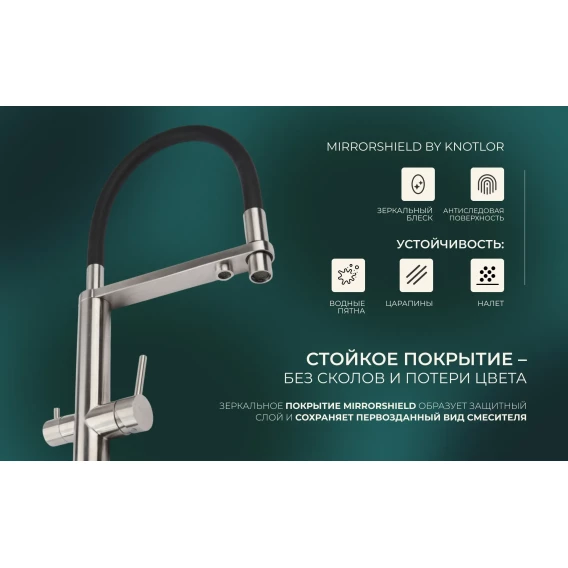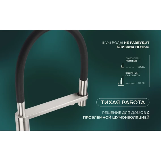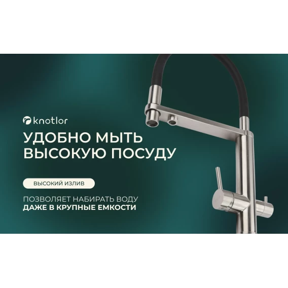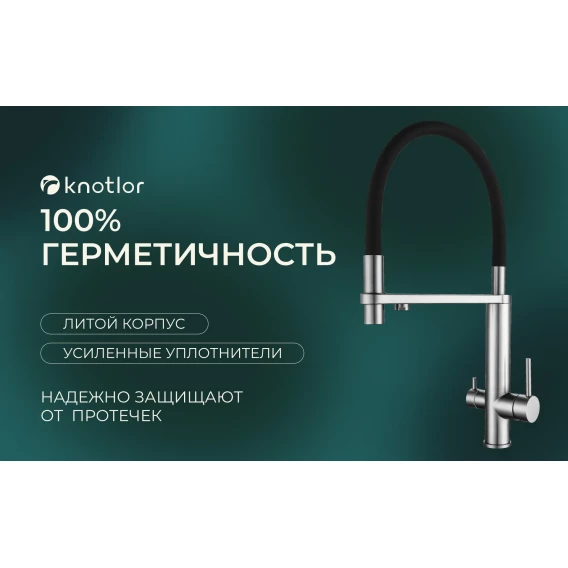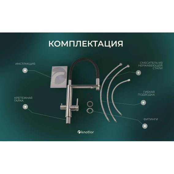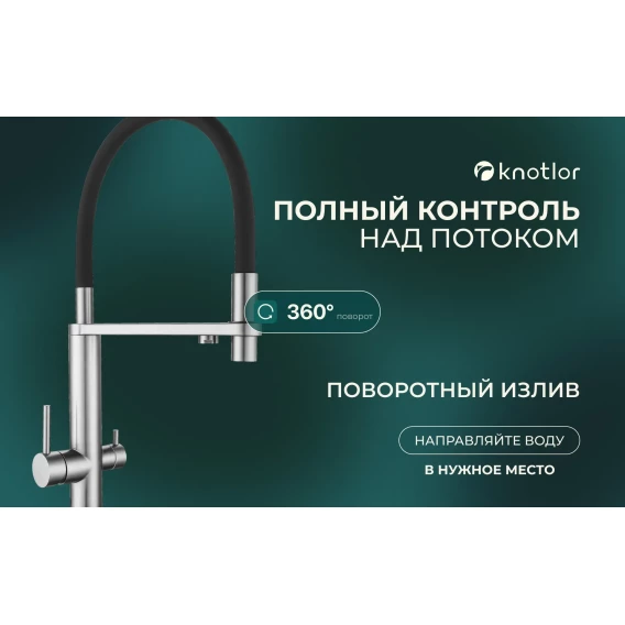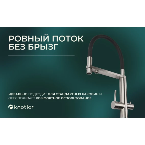 Смеситель для кухни Knotlor Infinity SS-15 с подключением к фильтру, гибким изливом, нержавеющая сталь