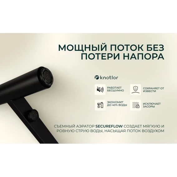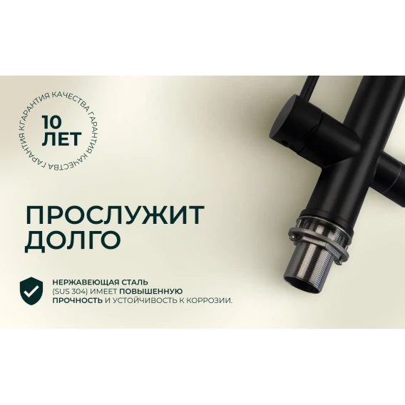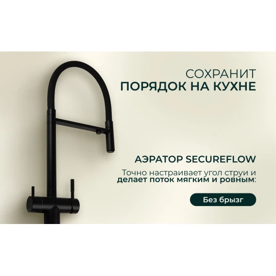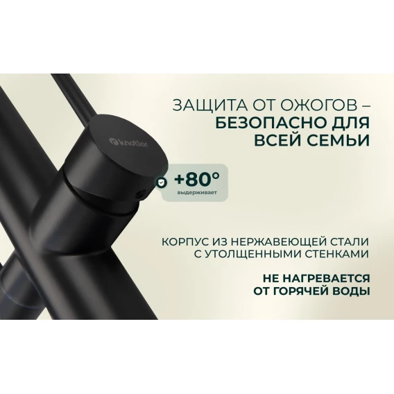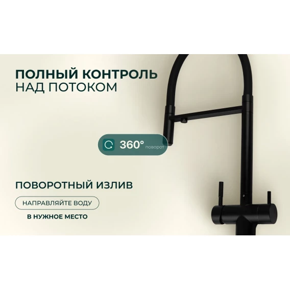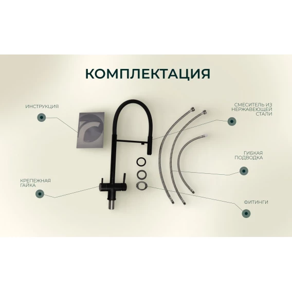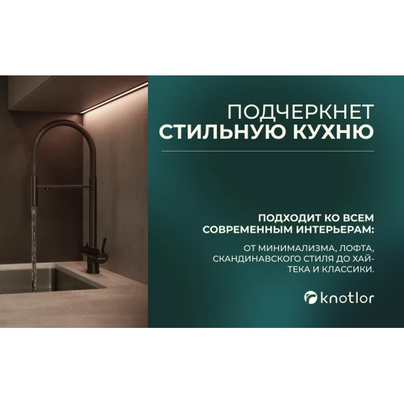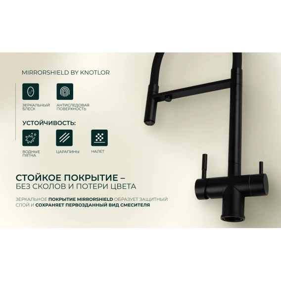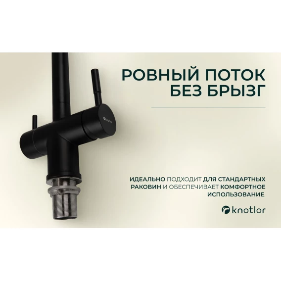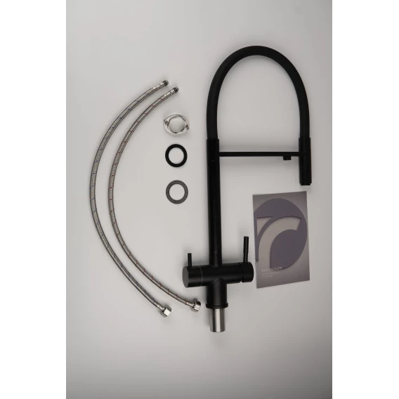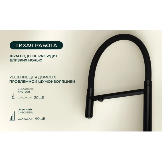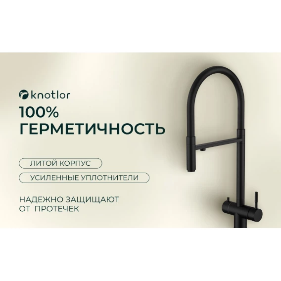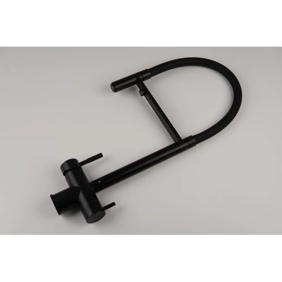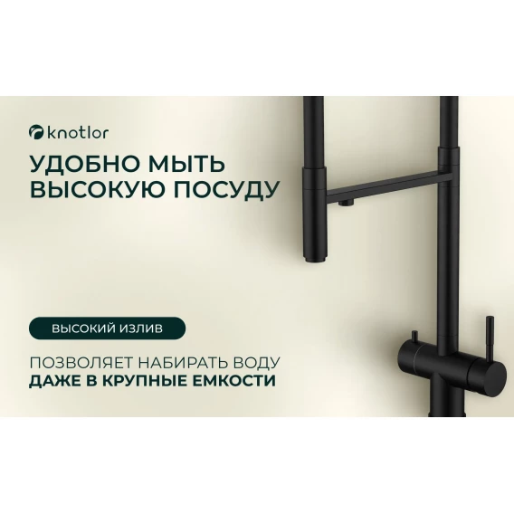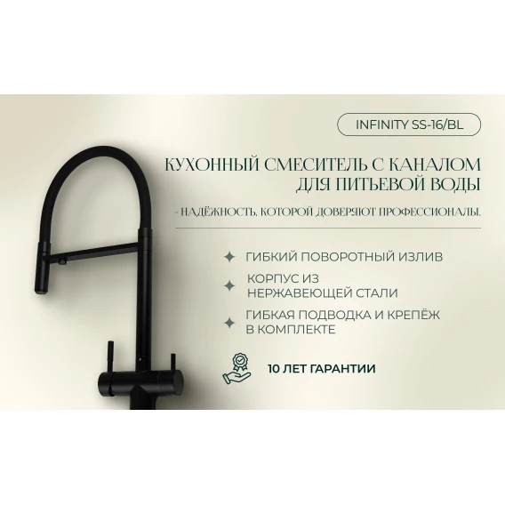 Смеситель для кухни Knotlor Infinity SS-16/BL с подключением к фильтру, гибким изливом, черный матовый
