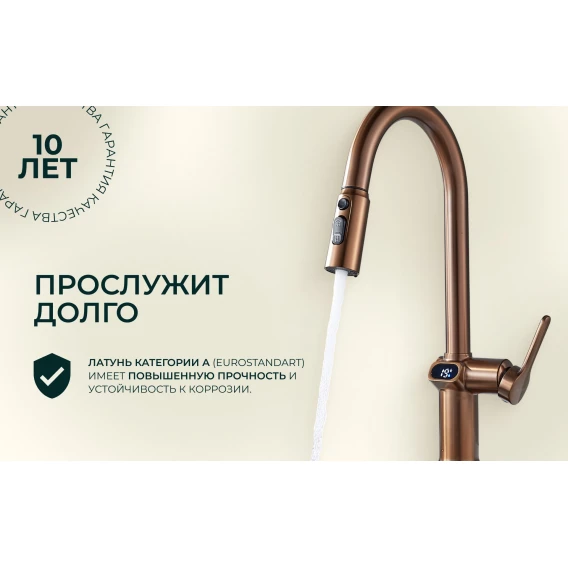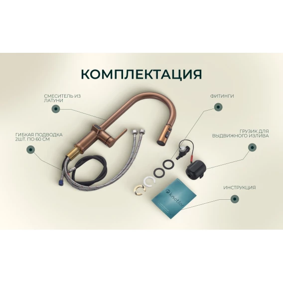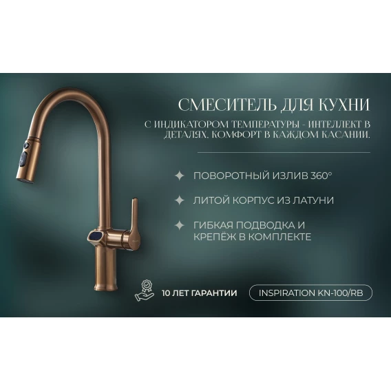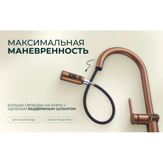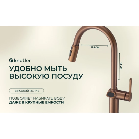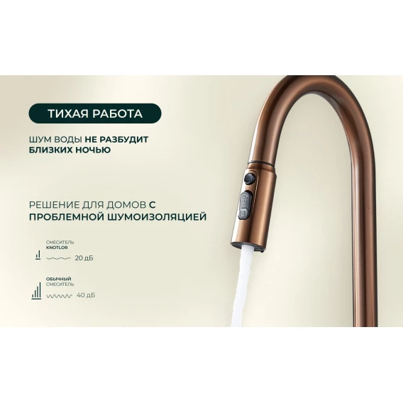 Смеситель для кухни Knotlor Inspiration KN-100/RB с выдвижным изливом, бронза матовая