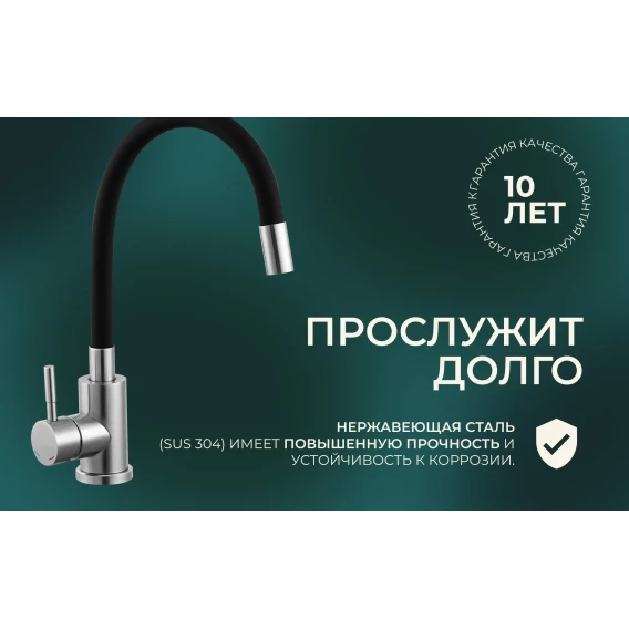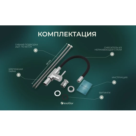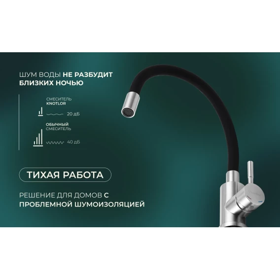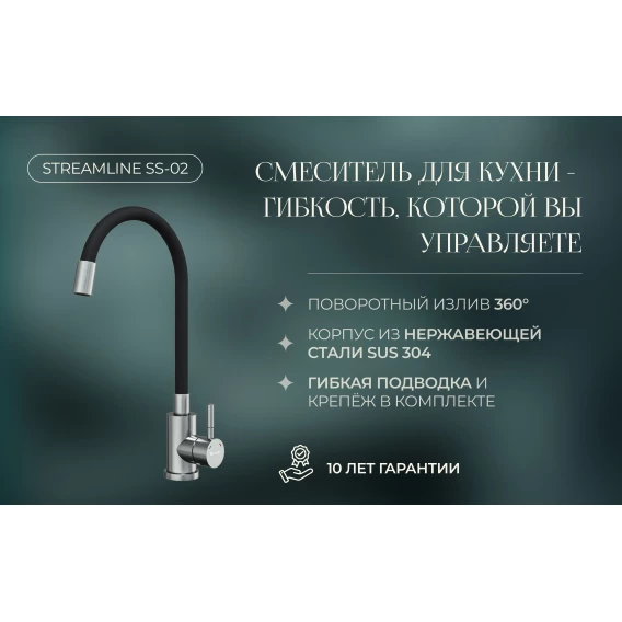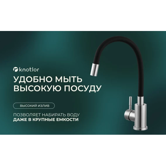 Смеситель для кухни Knotlor Streamline SS-02 с гибким изливом, нержавеющая сталь