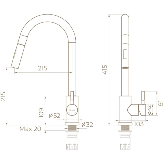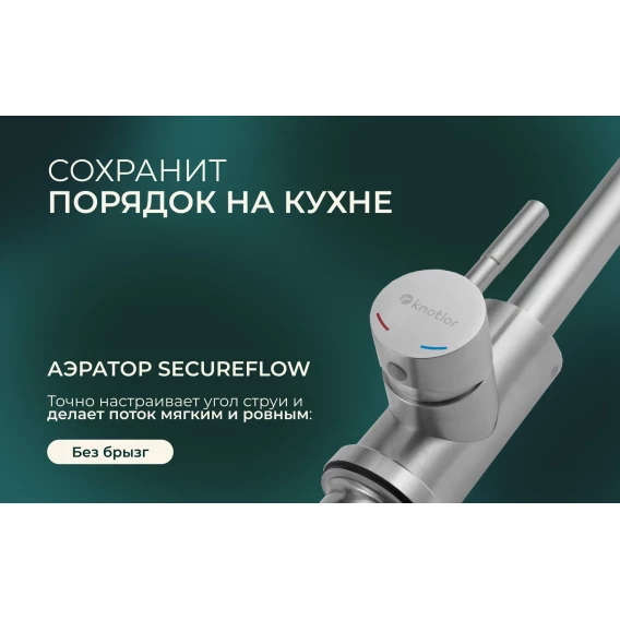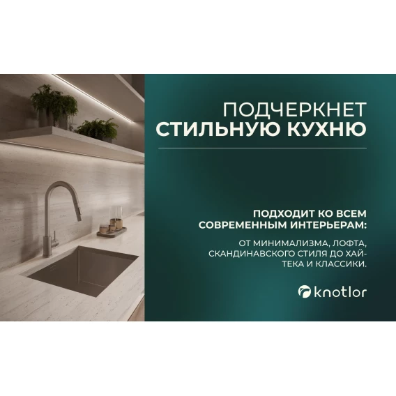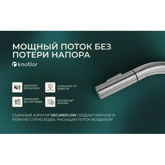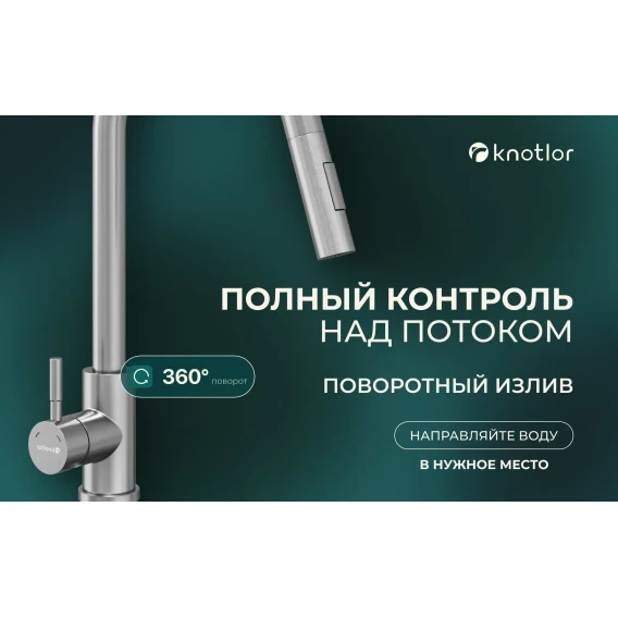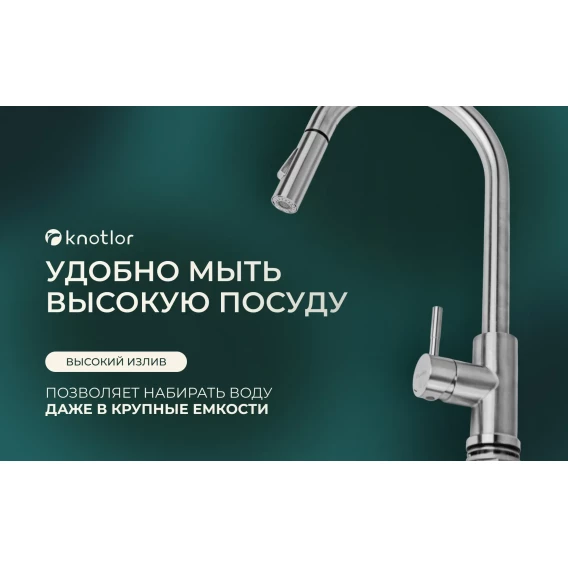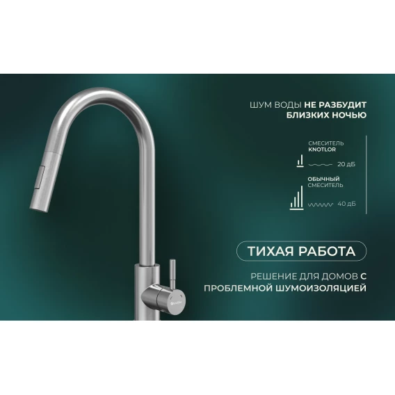 Смеситель для кухни Knotlor Streamline SS-09 с выдвижным изливом, нержавеющая сталь
