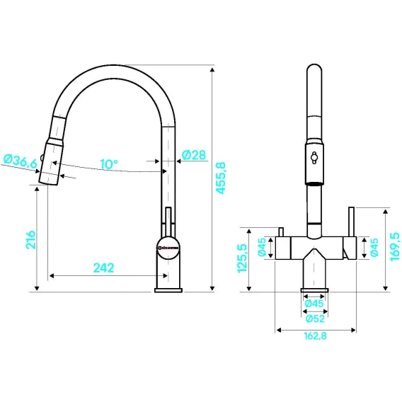 Высота излива 21.6 см