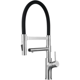 Смеситель для кухни KuchenStern Elit FE 407SS40 CoolStart, с подключением к фильтру, гибким изливом, нержавеющая сталь